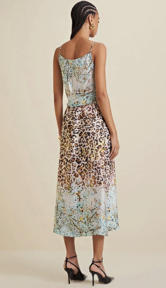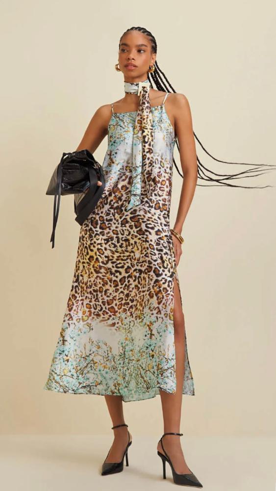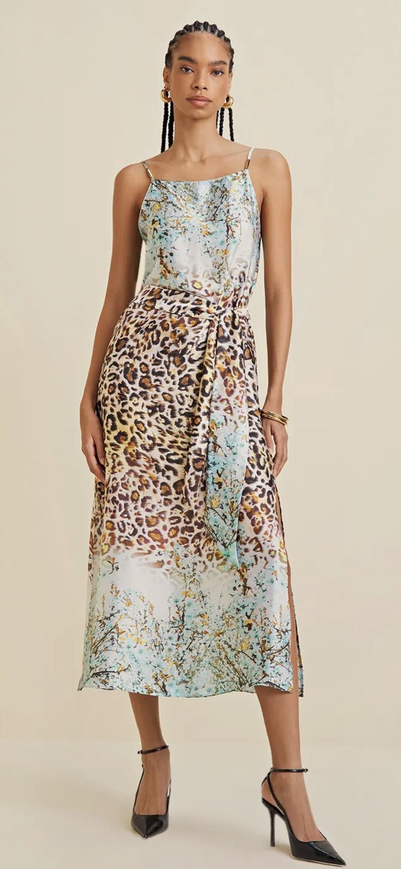 Vestido Morena Rosa Longo Decote Redondo Com Faixa Verde Claro