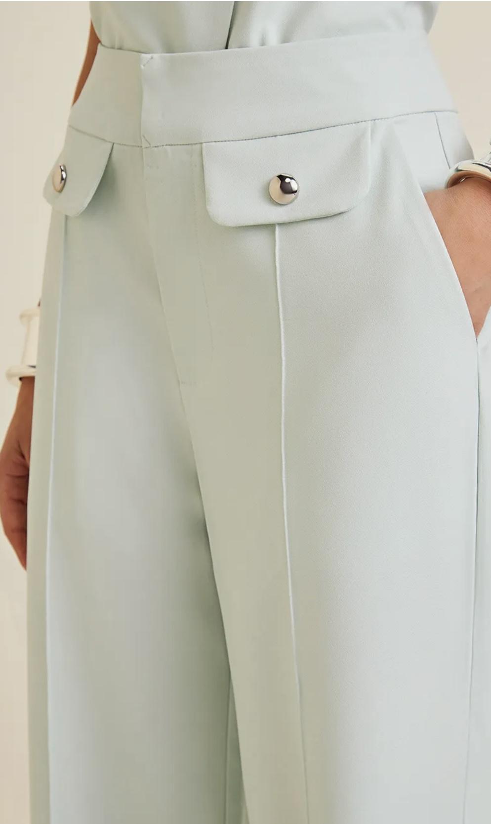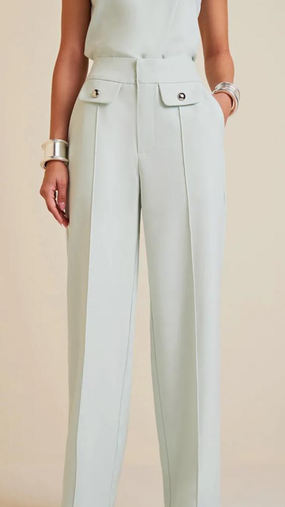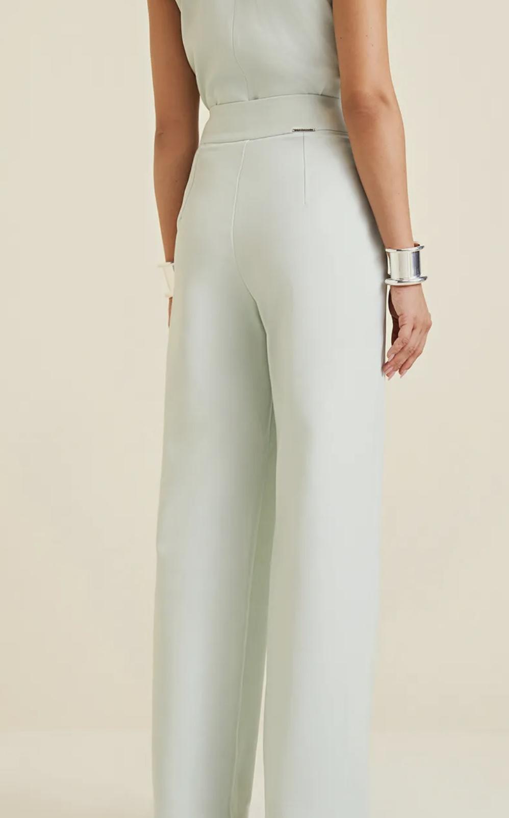 Calca Morena Rosa Alfaiataria Cós Alto Com Lapela Verde