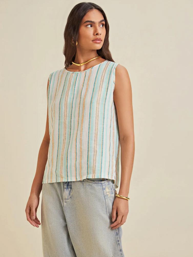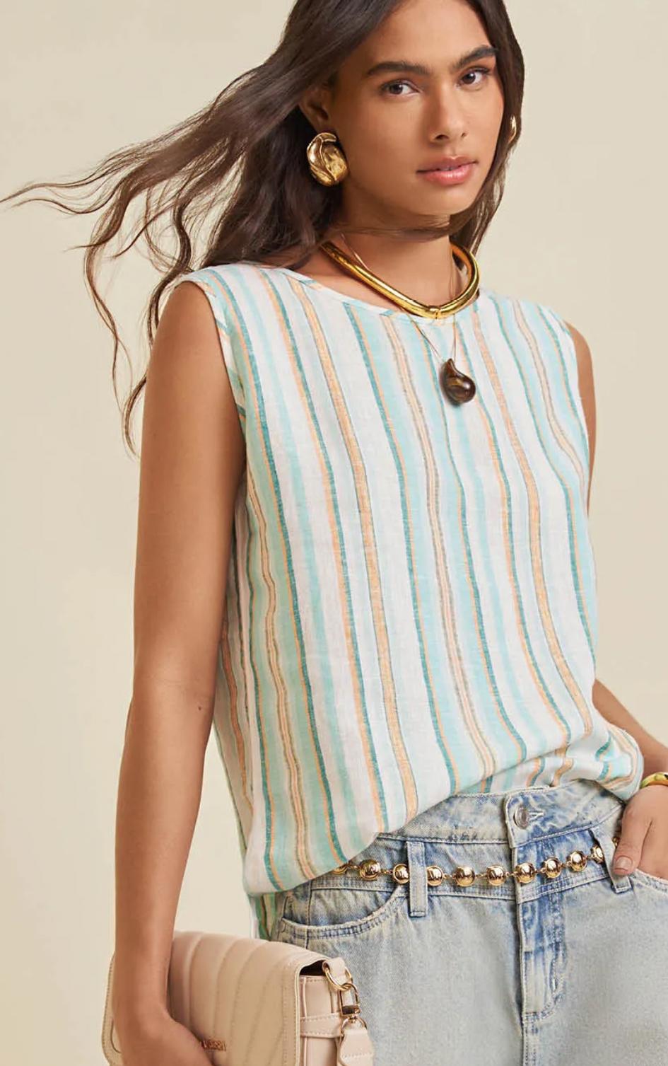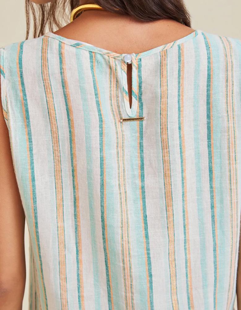 Blusa Morena Rosa Decote Redondo Sem Manga Abertura Cóstas Verde
