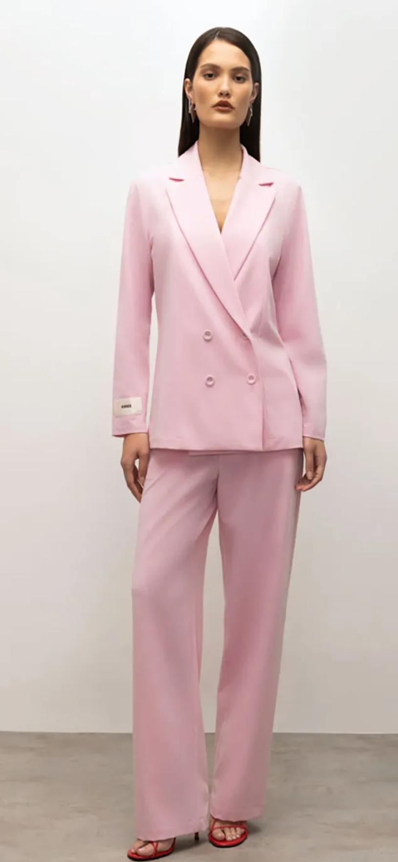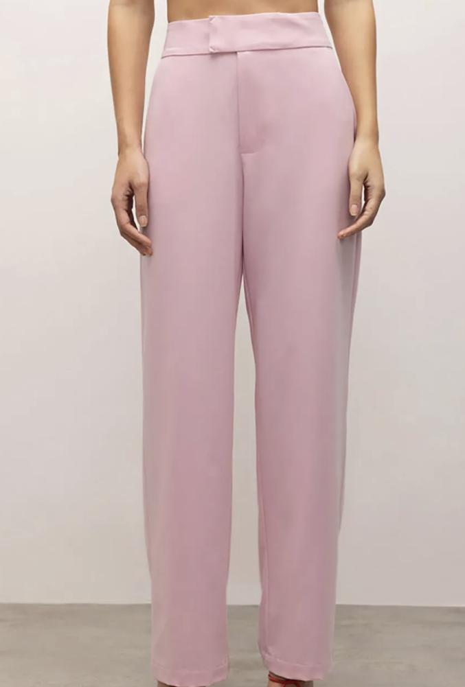 Calca Morena Rosa Alfaiataria Cós Alto Com Lapela Verde