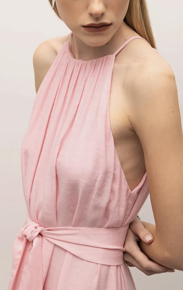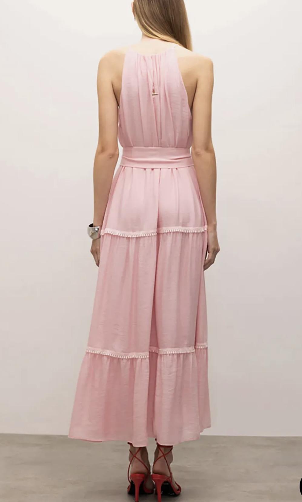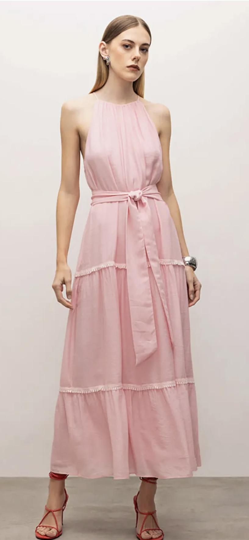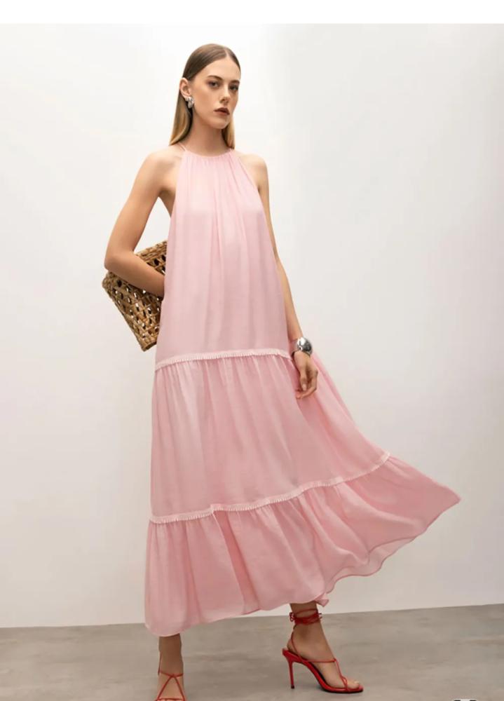 VESTIDO IÓDICE MIDI CAVA FRANCESA COM ENTREMEIO ROSA