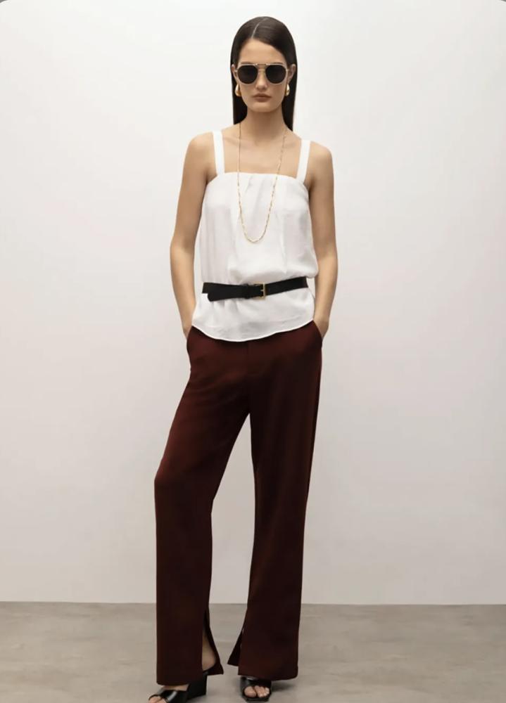 Calca Morena Rosa Alfaiataria Cós Alto Com Lapela Verde