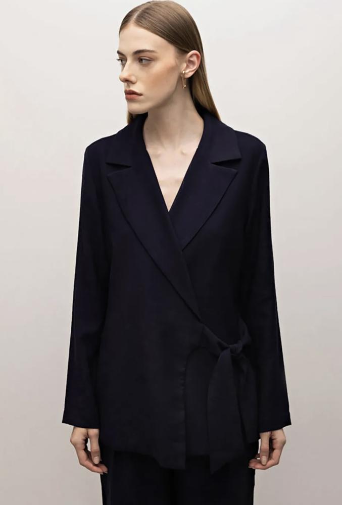BLAZER IÓDICE COM RECORTE COM AMARRAÇÃO AZUL MARINHO